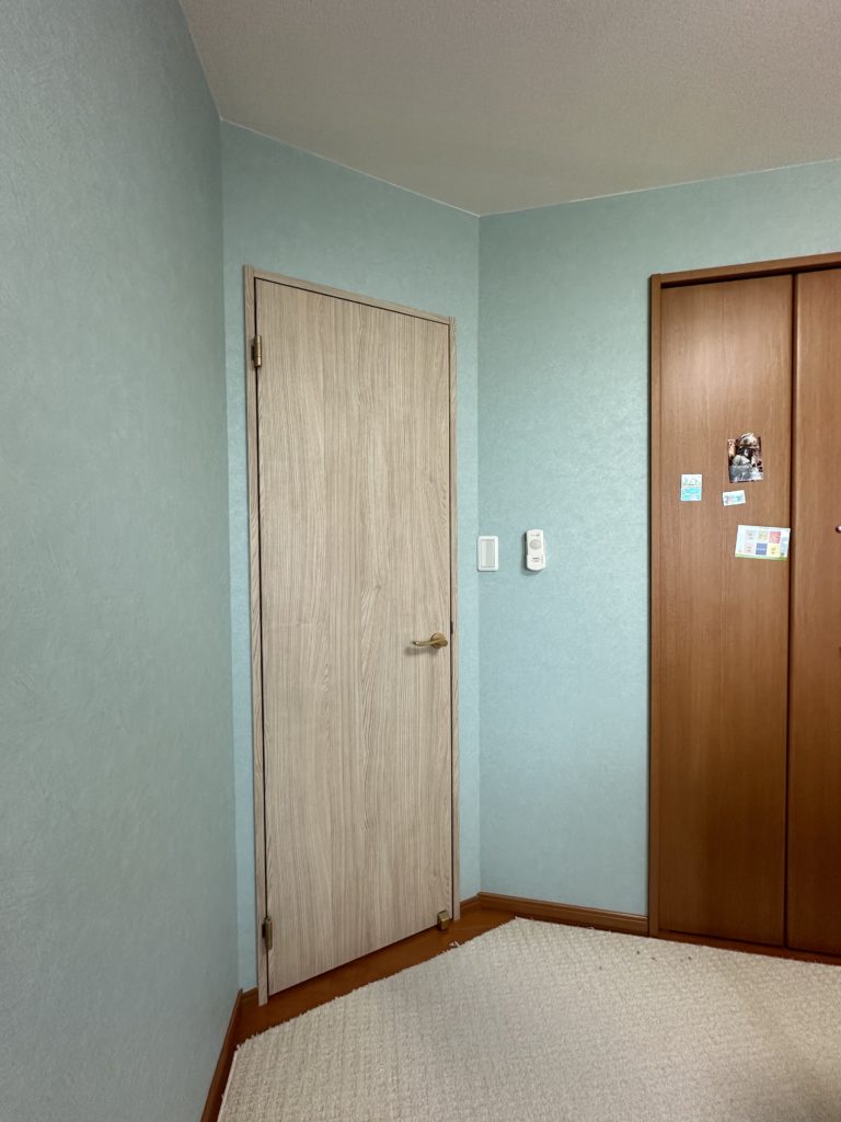 ▲After(新設したドア、周りの壁紙を貼り替え)