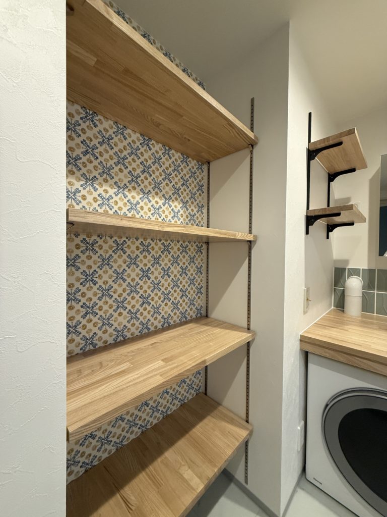 内部の壁紙を貼り替えてオープン収納へ。